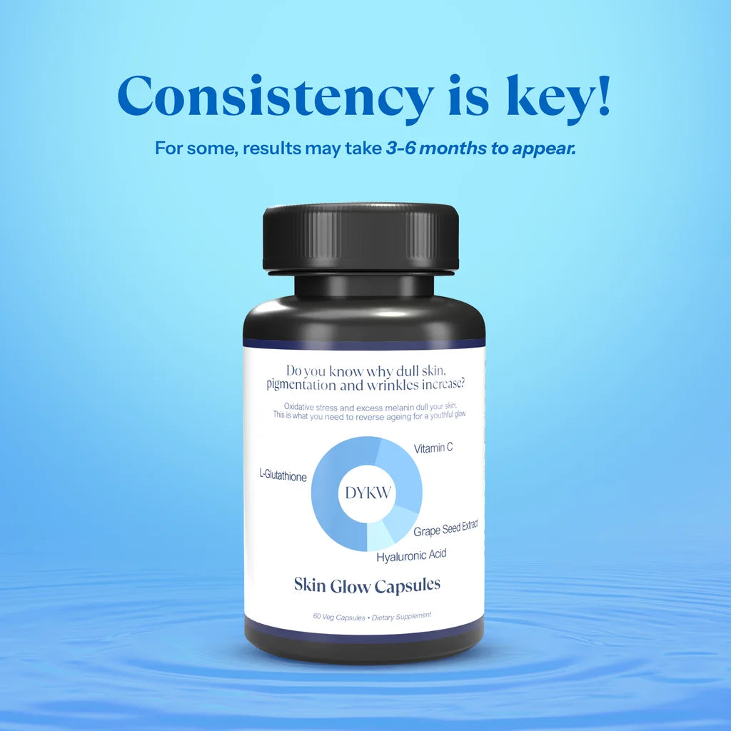 Environmental stressors and natural ageing can lead to dullness, pigmentation, and fine lines. DYKW’s Skin Glow Anti-Ageing Antioxidant formula combines powerful antioxidants and hydration agents to brighten skin tone, neutralize free radicals, and smooth texture from within.
